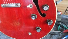 A restoration job taking out newly fitted pots on this 1961 Gibson 335 and putting back the original Centralab pots that were in the case, really fiddly job ….like putting a ship in a bottle x 5!